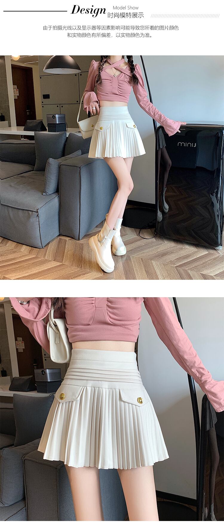 A ライン黒ウール プリーツ スカート女性スリム野生 Faldas ミニ傘スカート ウエスト春ペチコート ブラック スプリング 春物 asa44271634298