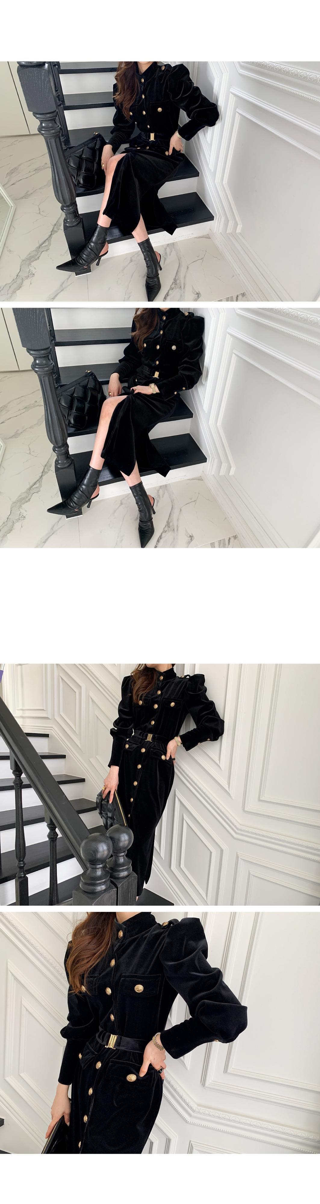 Vestidos es パラ フィエスタ シックなシングル ブレスト スタンド ブラック ベルベット ドレス女性ロング スリム ローブ パーティー パフ asa25877640989