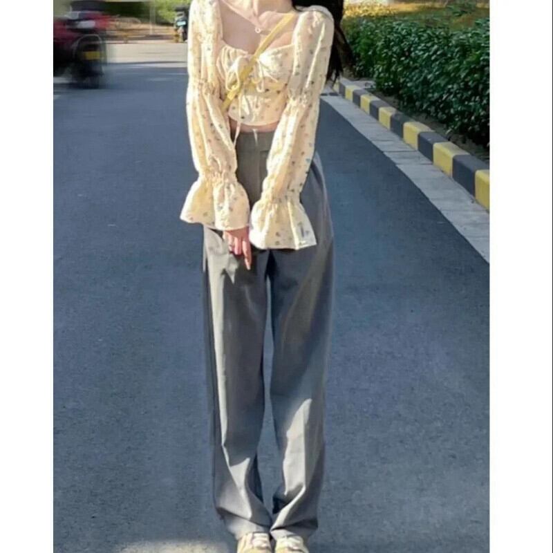 セクシーなスリムなレトロ気質花柄シャツ女性春夏クロップトップスレースアップスクエアカラーブラウス s スプリング 春物 サマー 夏物 スクウェア asa16232371056