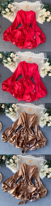 無地ルーズランタンスリーブサテンドレス女性フリルローブ Vestidos Y2k セクシーなドレスホリデー包帯ウエスト ソリッドカラー asa11325558705
