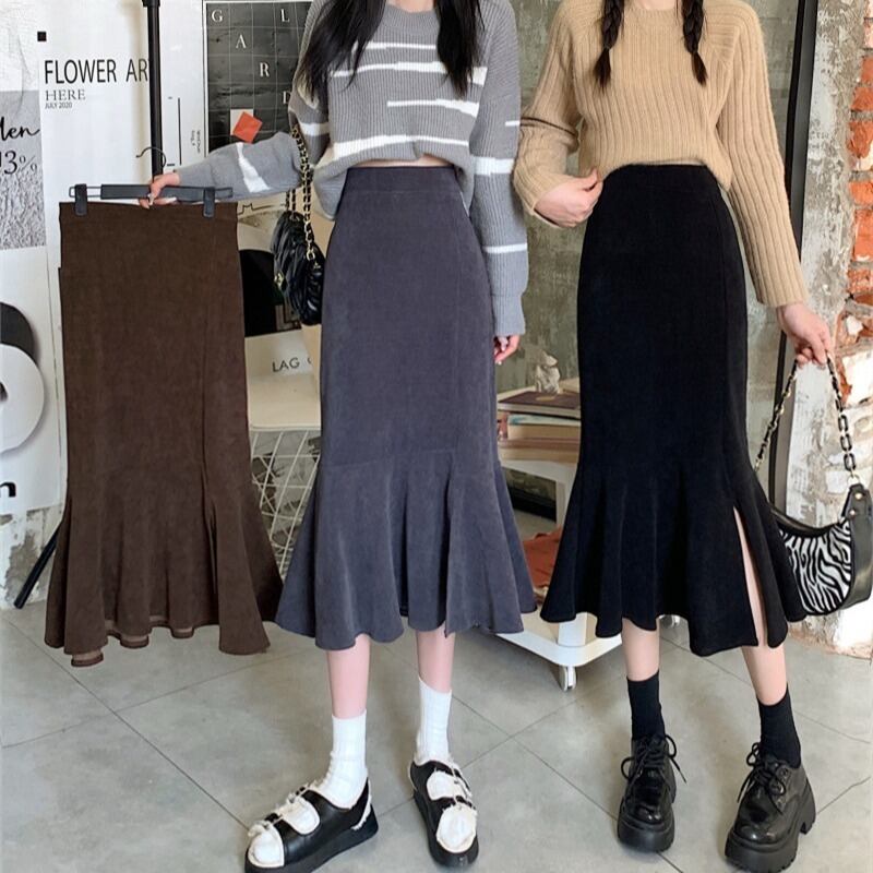 ウエストスプリット黒マーメイドスカートミディロング秋スリム A ラインラップヒップレトロ Faldas Largas 女性トランペットスカート ブラック オータム 秋物 Aライン asa77787428169