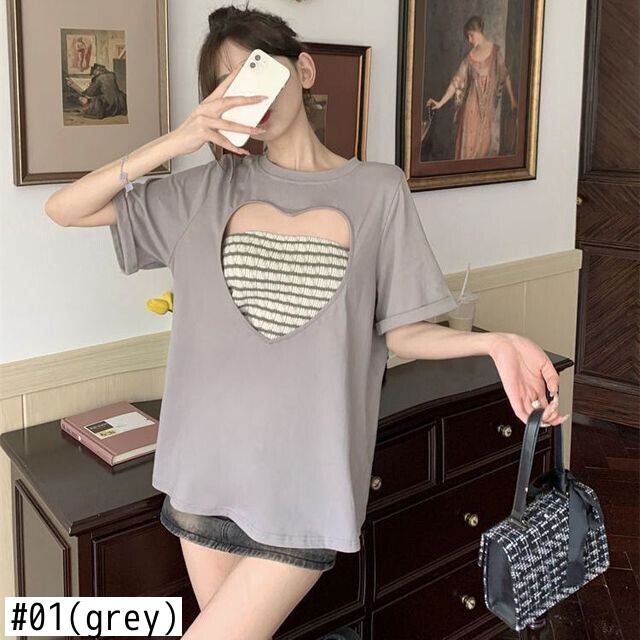 グランジ服グラフィック Tシャツゆるい中空愛 Tシャツ女性のセクシーな半袖トップス Y2k Tシャツ夏 Tシャツ野生 Ropa ショート ハーフスリーブ サマー 夏物 asa69682950466