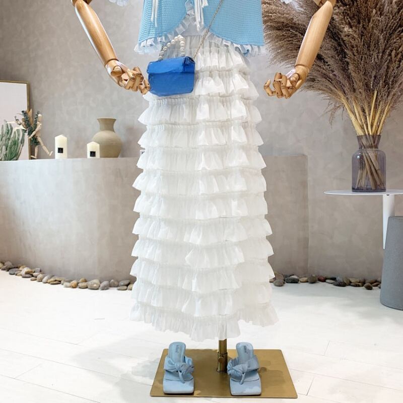 A ライン春弾性ウエスト フリル白ケーキ スカート女性ワイルド スリム ペチコート スタイル ミディ スカート段 Faldas モーダ ホワイト エラスティック 伸縮 スプリング 春物 asa50814024369
