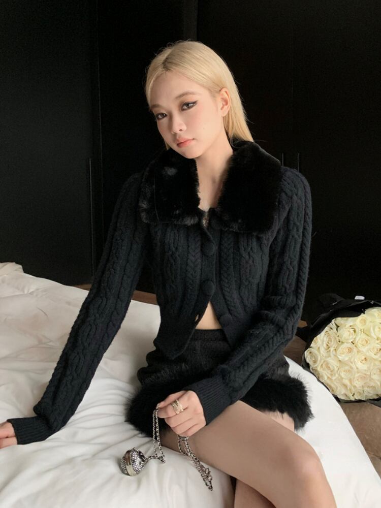 冬のニットセーターの女性の毛皮スリムカーディガン長袖暖かい Y2K ショートセーターコート ロング ウィンター 冬物 asa58162553567