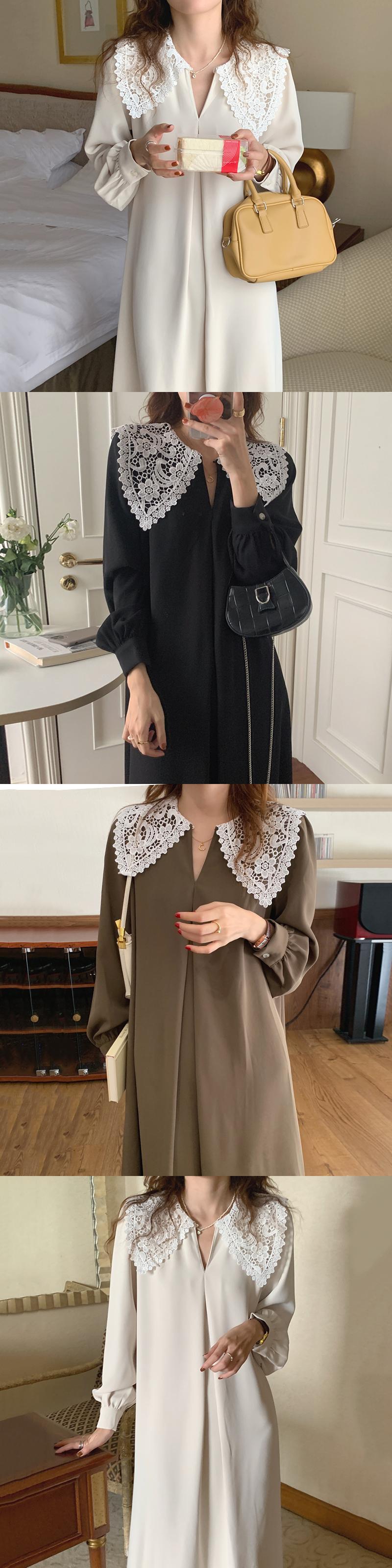ルーズロングスリーブドレスレトロレースかぎ針編みラペルプリーツ A ラインホリデードレス女性春 Y2k スタイルスーツローブ 長袖 スプリング 春物 Aライン asa49145048372