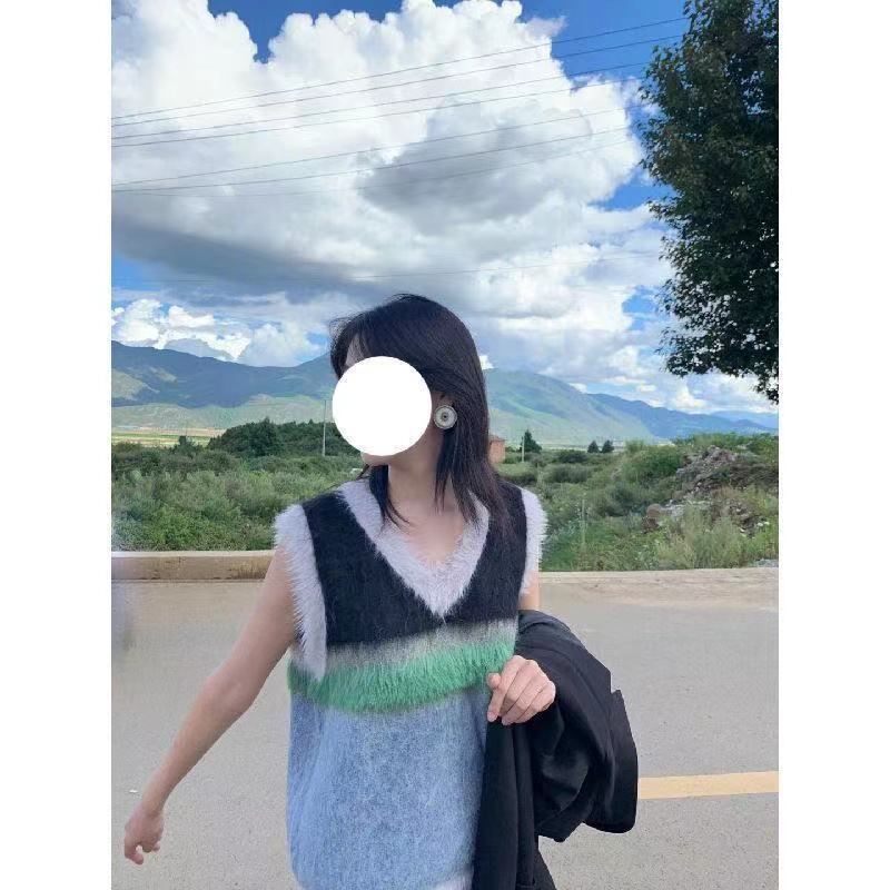ese コントラスト V ネック セーター ベスト Chalecos プリント ニット ベスト トップス 秋 ストライプ ベスト オータム 秋物 Vネック asa85338106326
