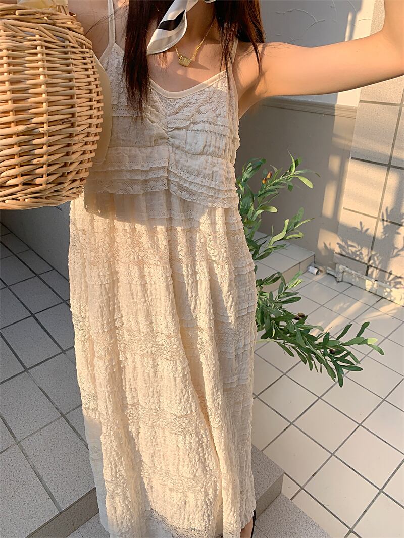 気質黒ストラップ レース ドレス女性スリム A ライン サスペンダー ビーチ サマー ドレス ブラック 夏物 Aライン asa5151521661