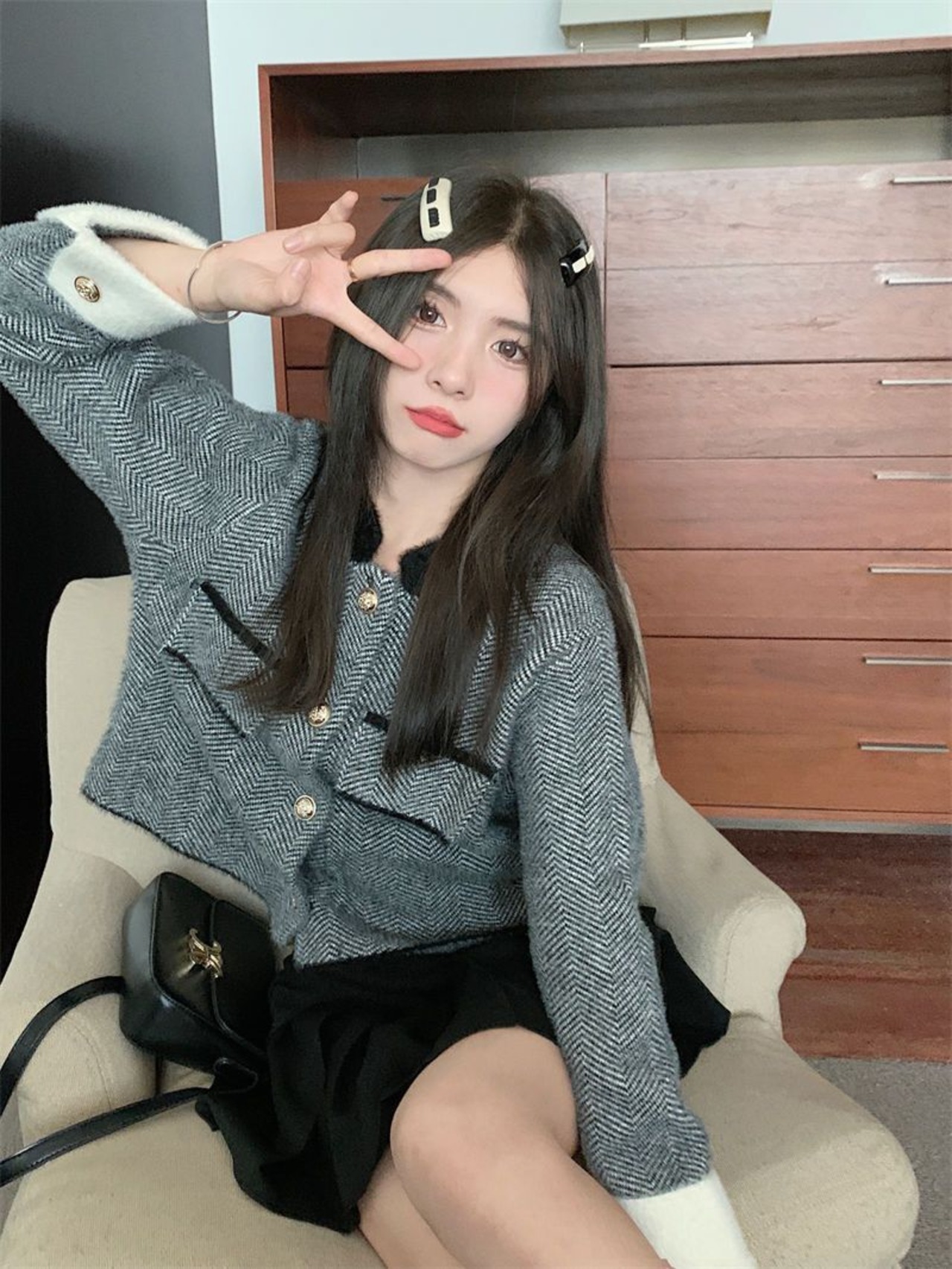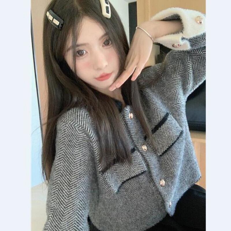 長袖ツイードジャケット女性ウールコートショートグレーカーディガン Chaquetas 春秋 Jaqueta トップス ロング スプリング 春物 オータム 秋物 asa50946959373