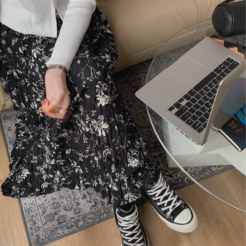 ミディロングスリム A ラインシフォンフレンチフローラルスカート女性レトロ春段 Faldas モーダペチコートプリントビーチスカート スプリング 春物 花柄 Aライン asa98924253038