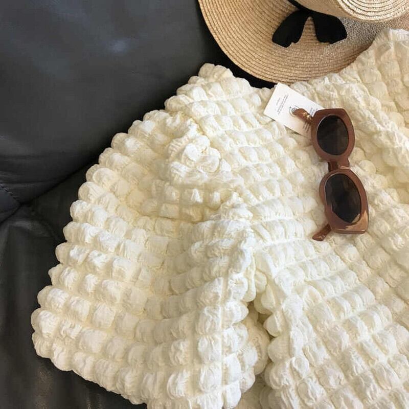 夏パフ Tシャツ女性半袖 3D チェック柄シャツ女性 Y2k トップスグラフィック Tシャツ Camisetas 野生 ショート ハーフスリーブ サマー 夏物 asa44060991516