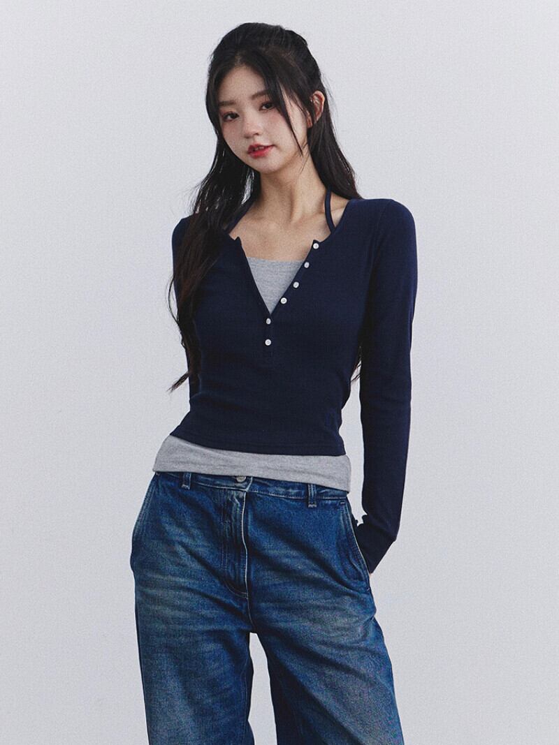 セクシーなフェイクツーピースクロップトップススリムグラフィック Tシャツホルター Tシャツコットングランジ美的 Tシャツ女性 Tシャツ秋 オータム 秋物 asa22956695898