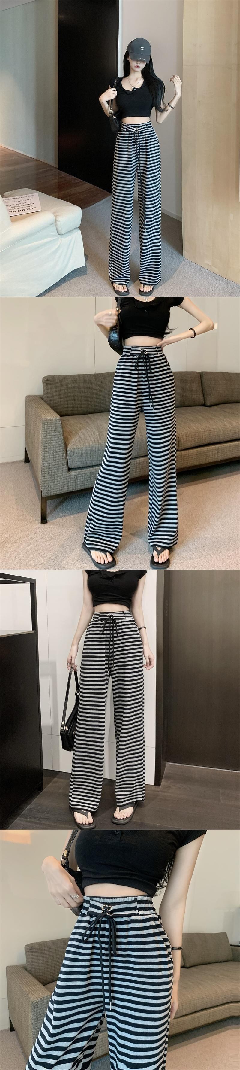 ストレート ドローストリング ブラック ホワイト ストライプ パンツ ワイドレッグ ストリート パンタロン スウェットパンツ ウエスト Y2k パンツ ワイドパンツ asa4782025553