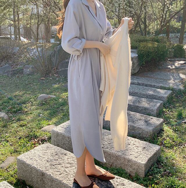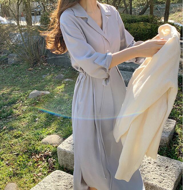 Vestidos デミニマリストワイルドラペルシングルブレストレースアップウエスト裾スリット黒シャツドレス女性春 Y2k ドレス ブラック スプリング 春物 asa64459945951