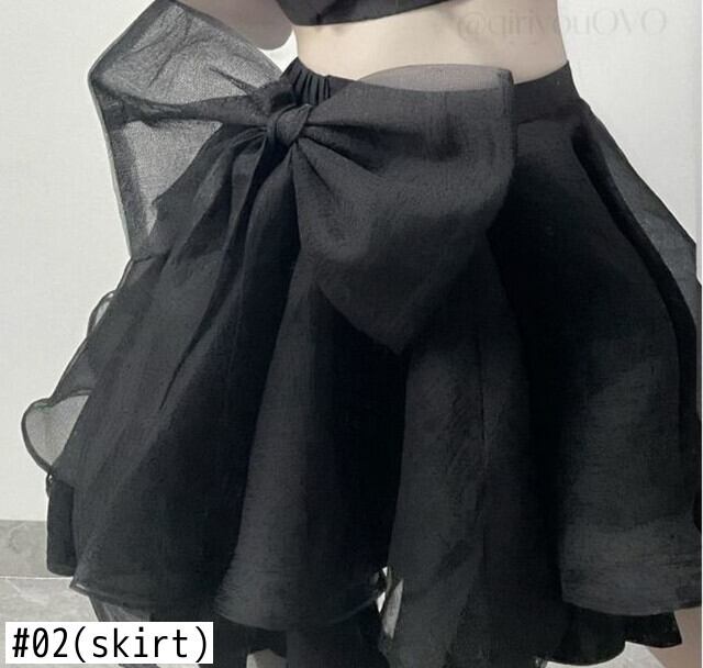 Y2k キャミソール クロップ トップス タンク ボウ ブラウス シャツ Aライン ウエスト フリル ブラック ガーゼ スカート ミニ 2点セット レディース セクシー 春 リボン スプリング 春物 asa57981012935