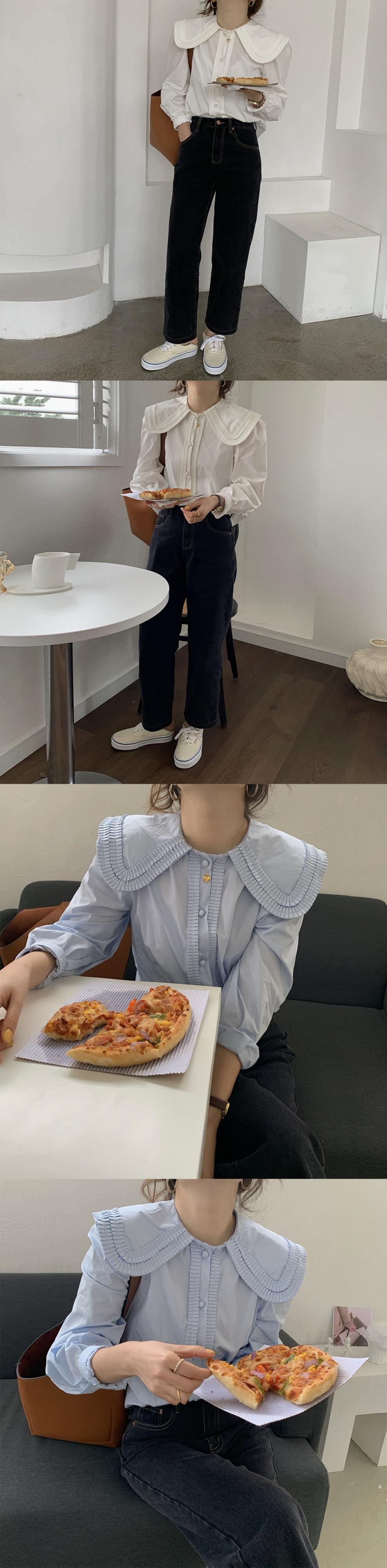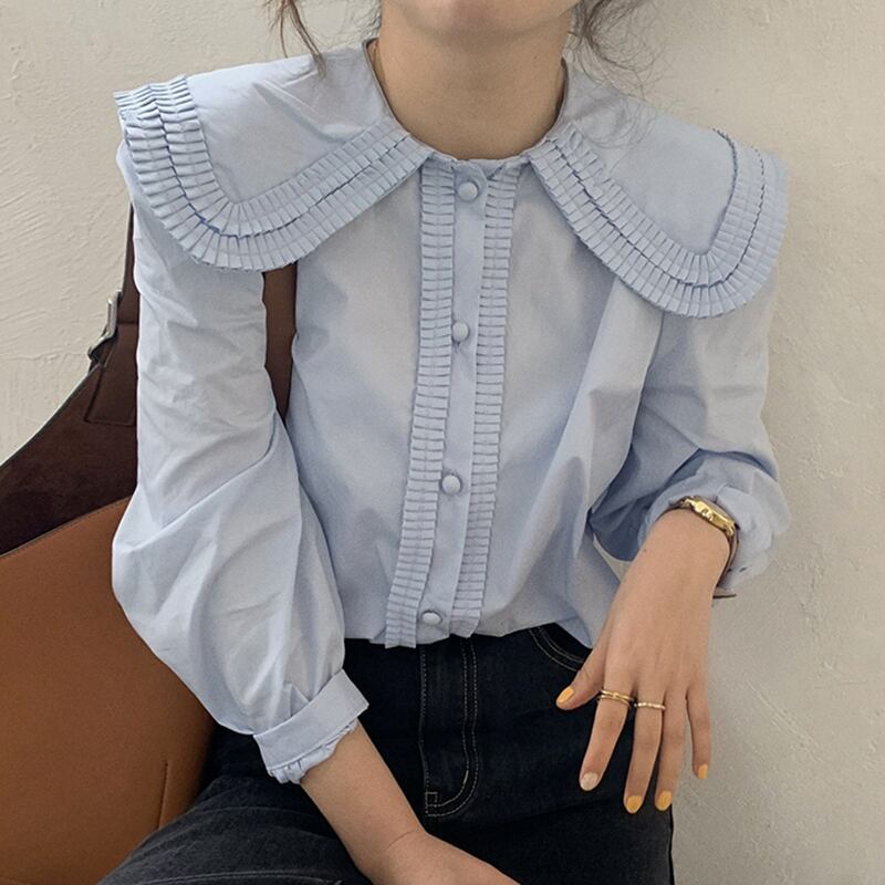 s プリーツ ゆったり バブルスリーブ トップス ブルー ドール シャツ レディース OL 白 ブラウス ワイルドシャツ ホワイト asa94630415014