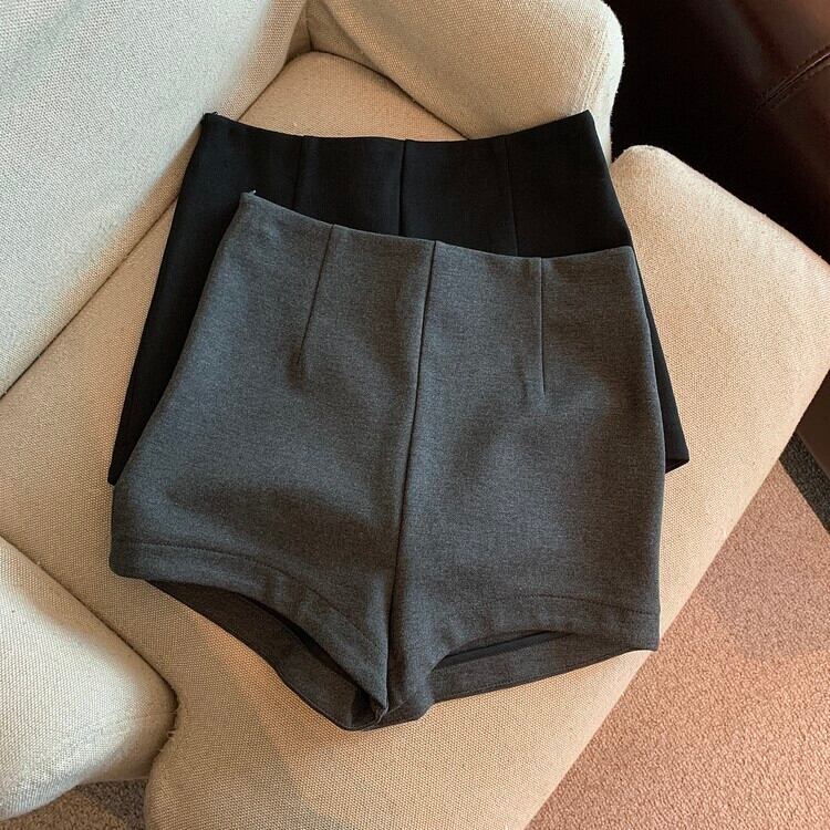 ウエストワイド脚ストレート A ライン黒ショーツのセクシーな Pantalones Cortos デグレースーツショーツ春 ブラック スプリング 春物 ブルマー Aライン ワイドレッグ ワイドパンツ