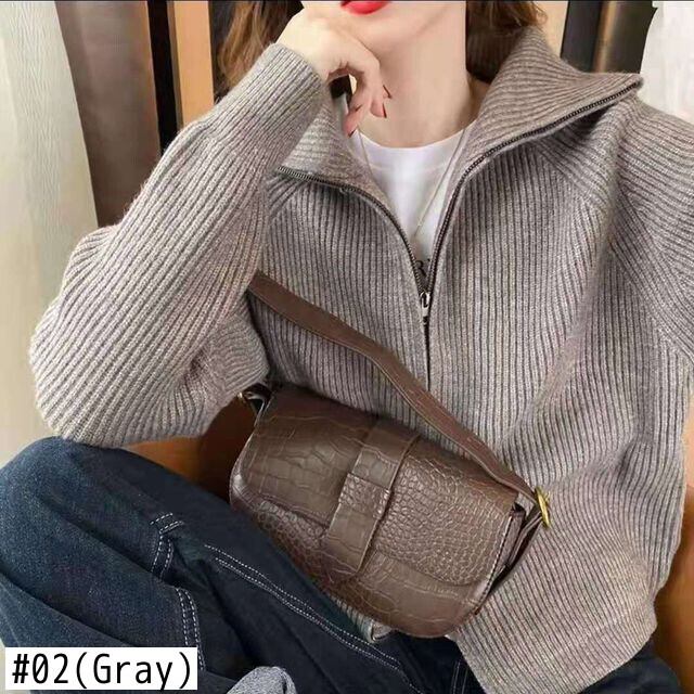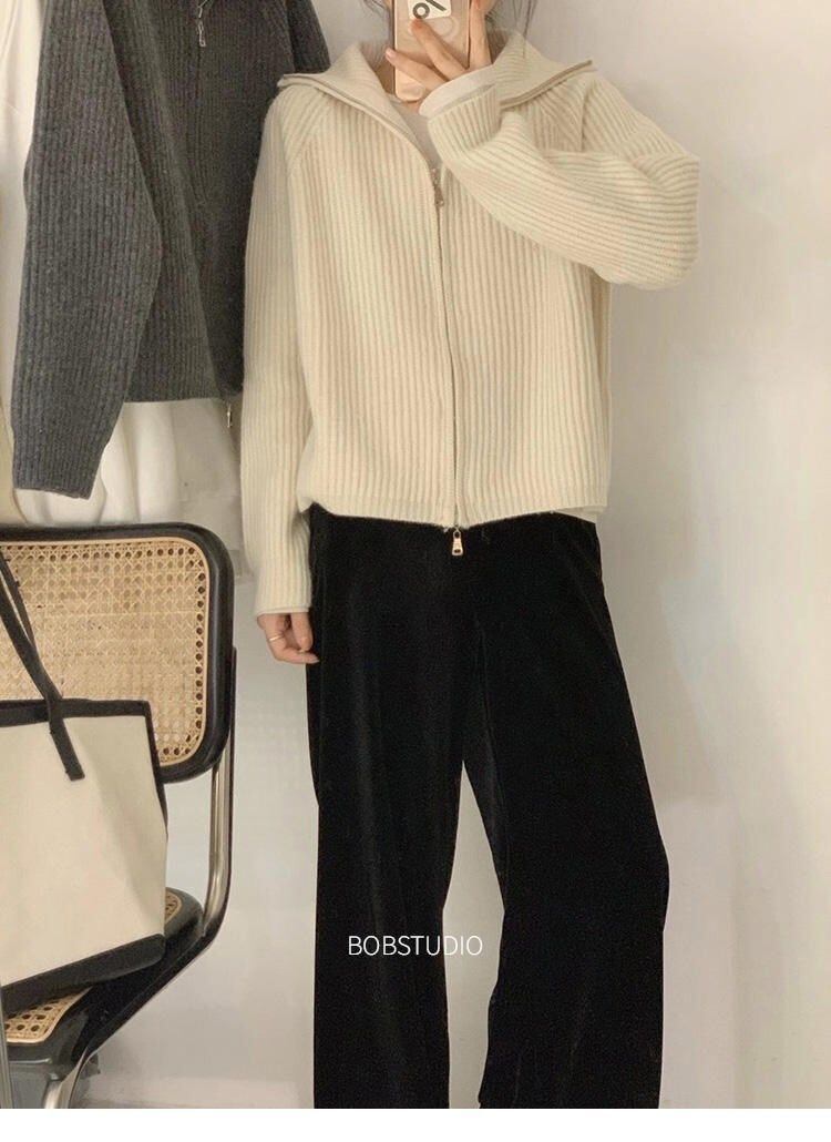 ターンダウン襟特大カーディガン秋冬服原宿ツイストセーター Y2k グレーニットジャケットジッパー かわいい ウィンター 冬物