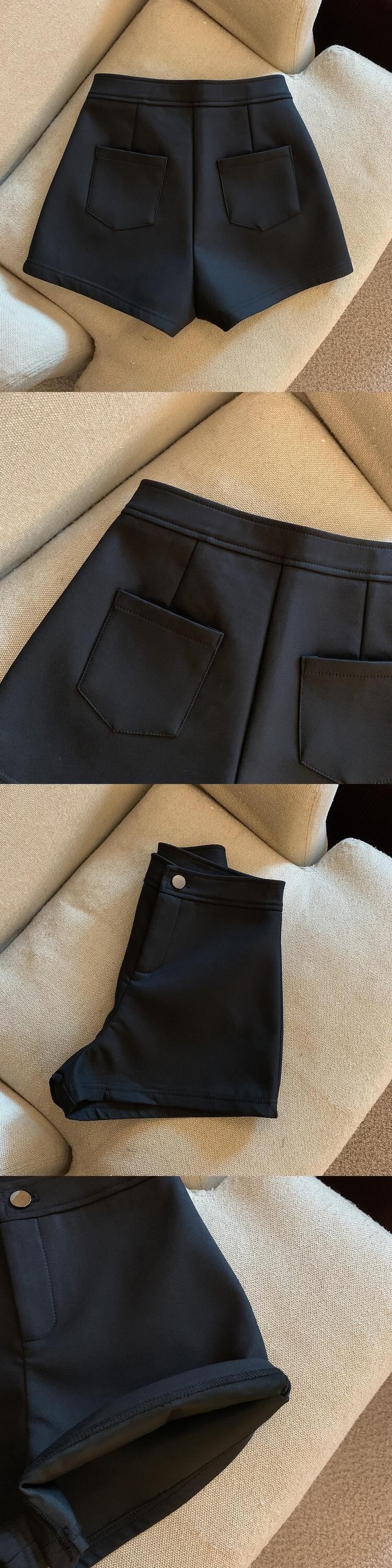 Pantalones Cortos De 春夏ウエストスーツワンボタン弾性ブラックワイドレッグショーツセクシーグレー エラスティック 伸縮 スプリング 春物 サマー 夏物 ブルマー ワイドパンツ
