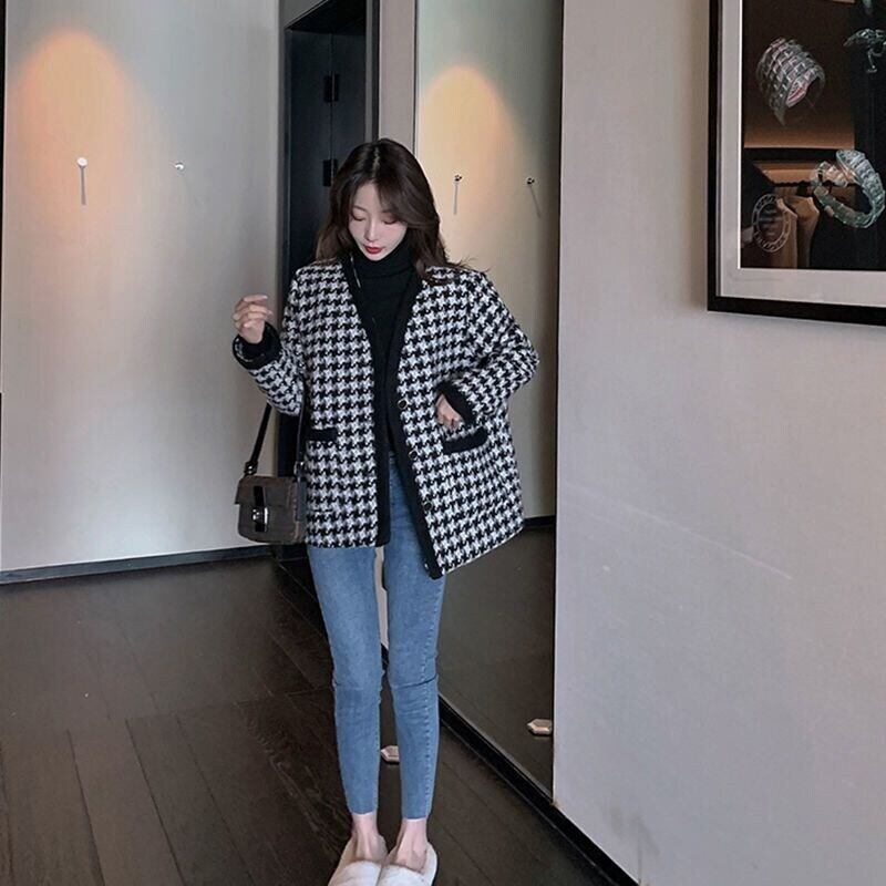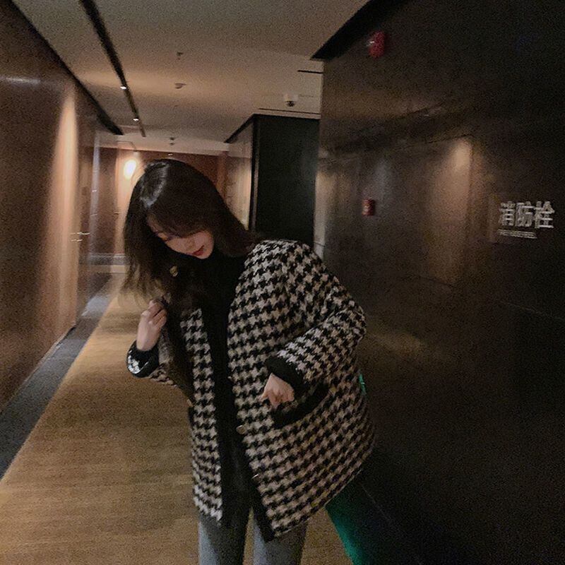キルティング コート ブラック 千鳥格子ジャケット 秋 スモール フレグランス ウール コート カーディガン Jaqueta オータム 秋物