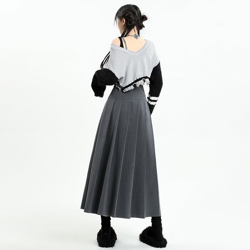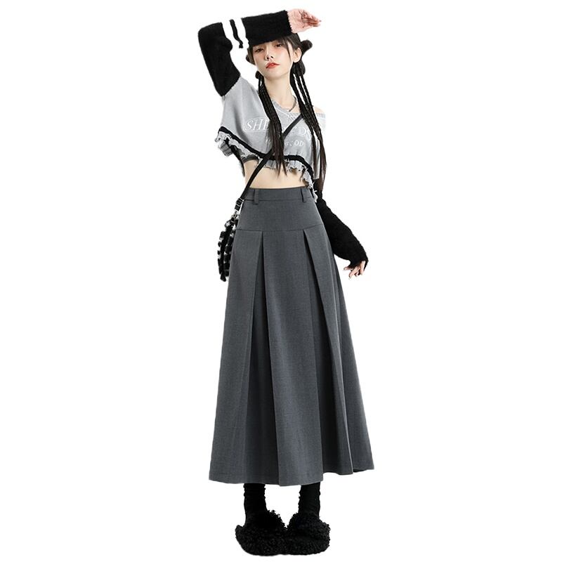 プレッピースタイルグレープリーツスカートペチコートマキシ段 Faldas Largas ミディロング A ラインカーゴスカートスーツ Aライン