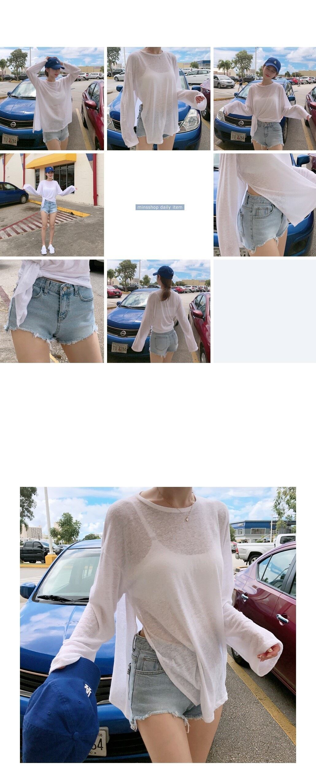 シャツ女 ロング ホワイト 長袖 Oネック Tシャツ