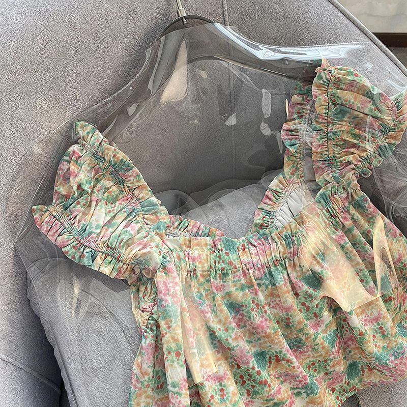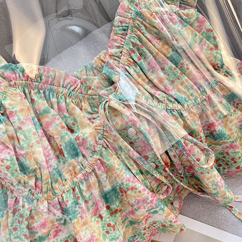 セクシーなクロップトップス花柄ブラウスタンクキャミソールボタンレースアップスリムドールシャツ Blusa シフォンシャツ