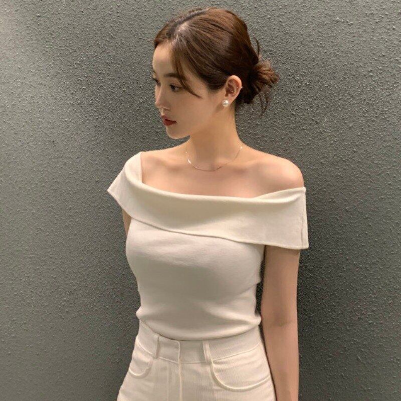 セクシーなスリムオフショルダー黒 Tシャツ夏のクロップトップ 1 半袖ストライプシャツ Y2k トップ Ropa デニット ショート ブラック ハーフスリーブ サマー 夏物