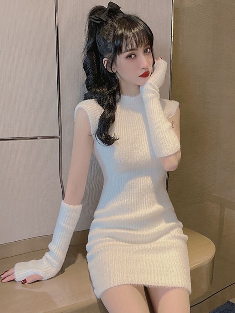セクシーな甘いローブ スリム ラップ ヒップ O 長袖セーター ドレス ミニ Vestidos ソリッド ウエスト パッチワーク ロング 大人ガーリー スウィート キュート カジュアル ソリッドカラー