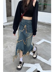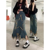 シックなウエストスリムラップヒップ 3D 五芒星デニムスカートのセクシーな Y2k ミディスカート段 Faldas モーダジーンズ