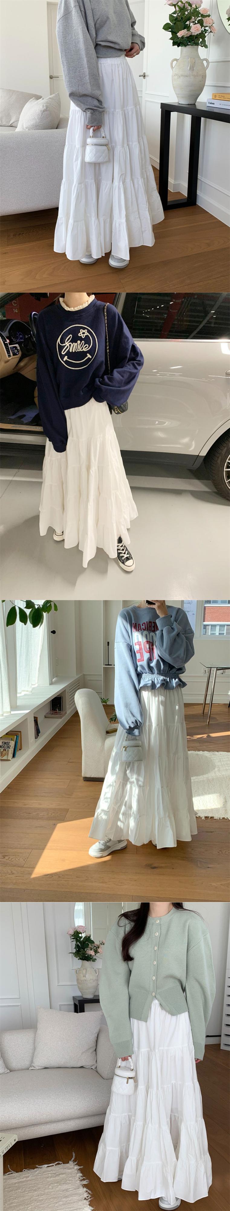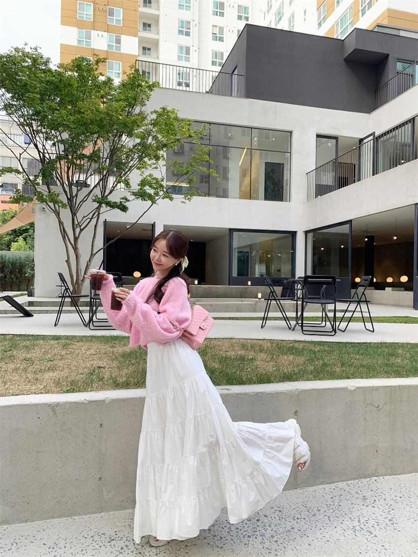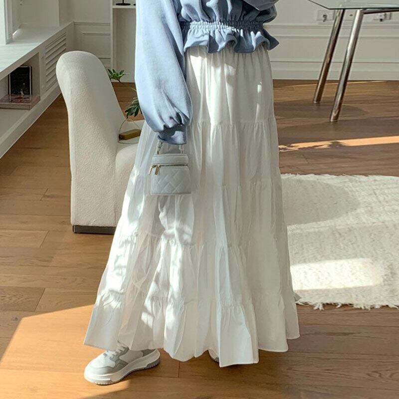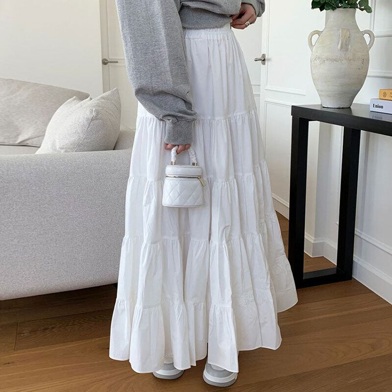 段 Faldas Largas ペチコートウエストパッチワーク無地大スイング白ケーキスカート春ワイルドプリーツスカートフリル ホワイト スプリング 春物 ソリッドカラー
