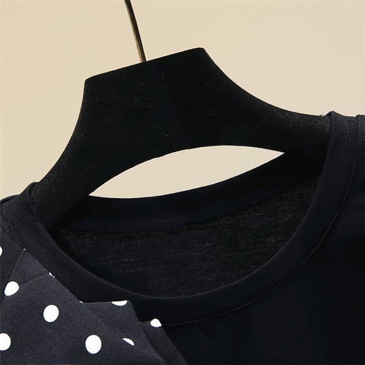 ルーズ パッチワーク Cottee Tシャツ O ネック半袖グラフィック T シャツ フリル ブラック ホワイト ポルカ ドット Tシャツ トップス ショート ハーフスリーブ Oネック