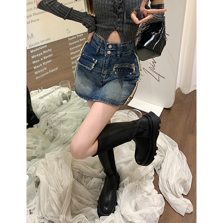 ミニセクシーなスリムラップヒップジーンズスカートショーツウエストペチコート Y2k ラップヒップジッパー Tels スカートデニム段 Faldas ブルマー