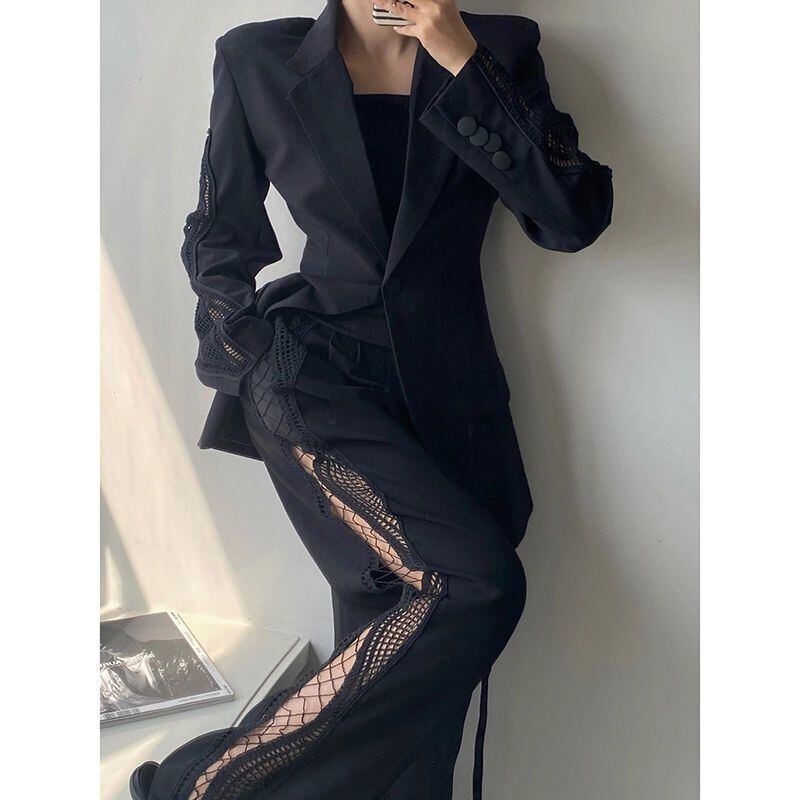 ホワイトワイドレッグパンツ春夏ウエストストレートブラック中空アウトパンツカーゴスウェットパンツ Y2k レース スプリング 春物 サマー 夏物 ワイドパンツ