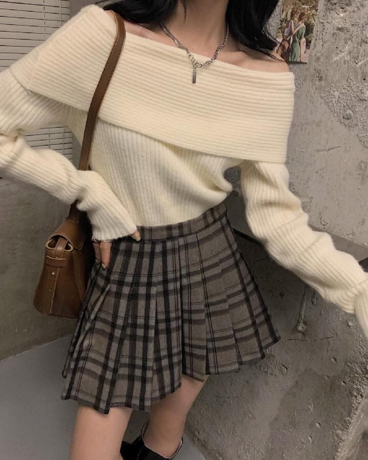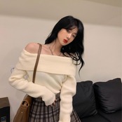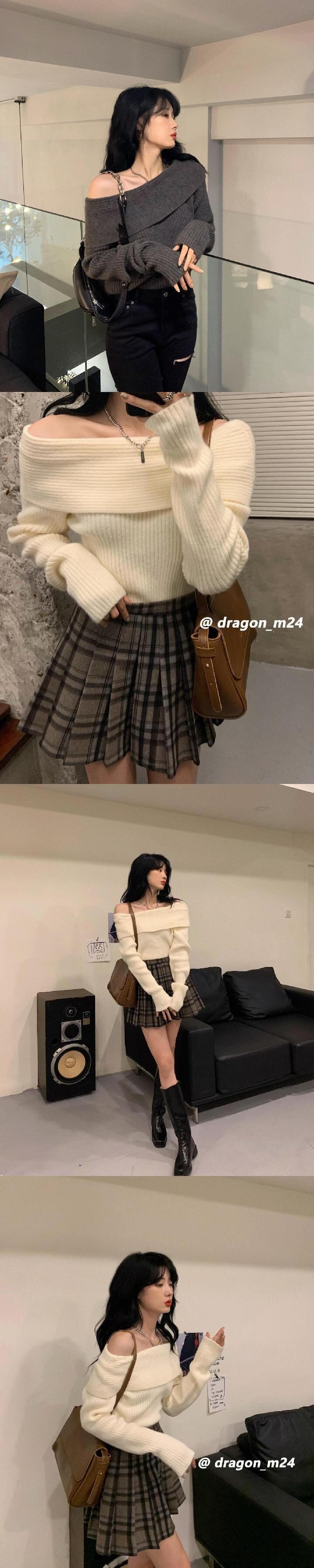 セクシーなオフショルダープルオーバーセーターシックワンクロップトップセータージャンパーグレーセーター服ニットシャツ