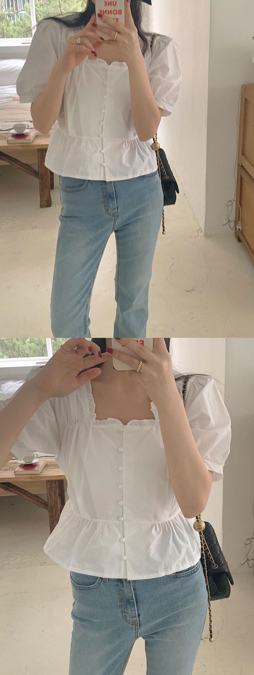 Fungus シングルブレスト スクエアパフ 半袖 フリルシャツ トップス ese ブラウス Y2k ピンク 白 シャツ レディース スウィート ショート ホワイト ハーフスリーブ 大人ガーリー キュート カジュアル スクウェア