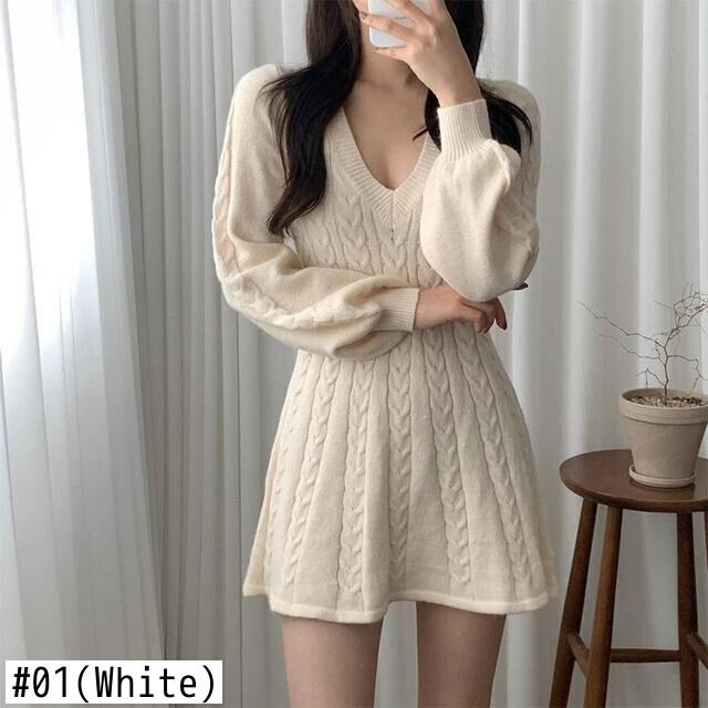 ミニ黒ニットランタンスリーブドレス秋 V ネックウエストピンクツイストセータードレス Vestidos ローブ野生 ブラック オータム 秋物 Vネック