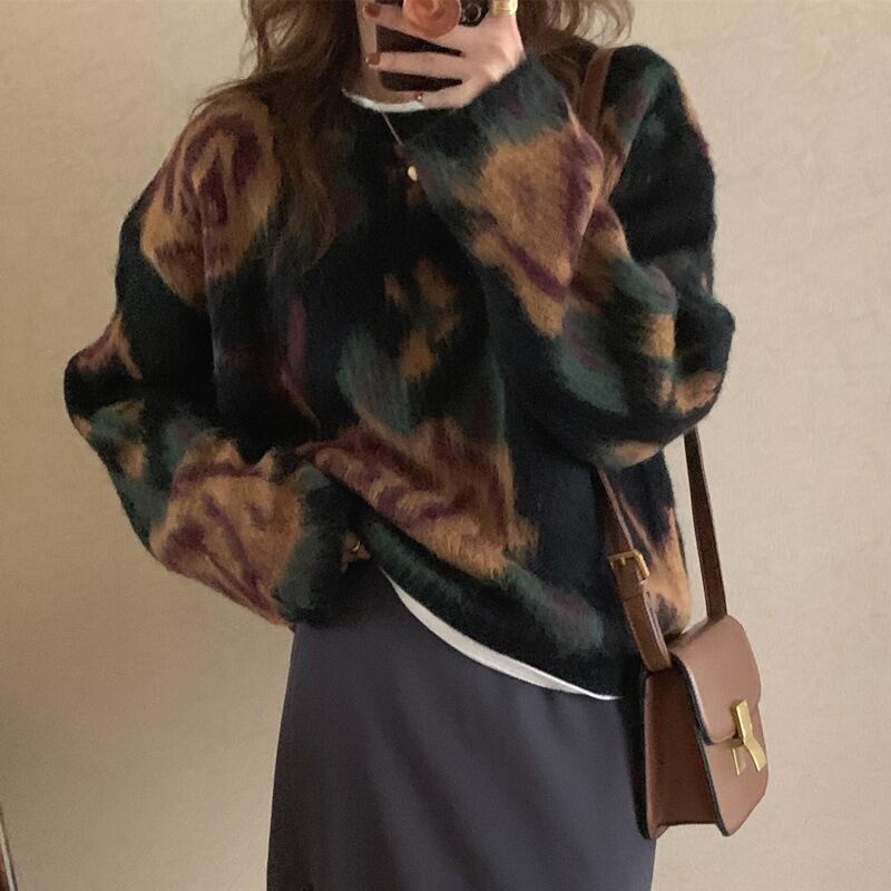 コントラストグラデーション絞り染めセーターセータージャンパーニットコートプルオーバー特大セータープリント