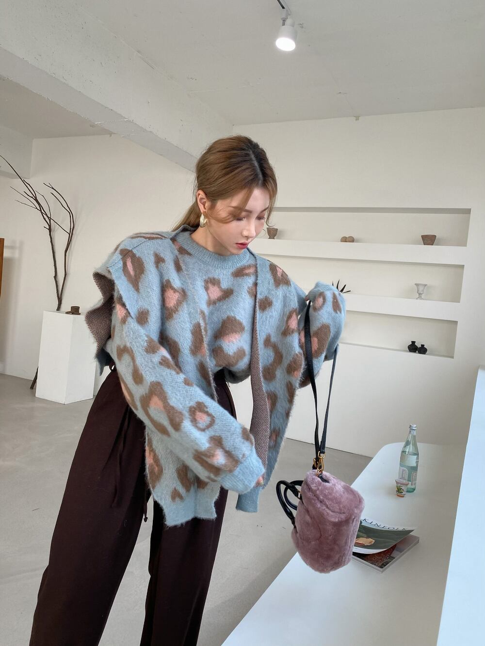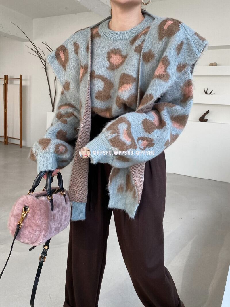 O 冬ルーズヒョウセーターニットショールトップスプリントストリートジャンパー特大セーター Y2k ゴスセーター ウィンター 冬物