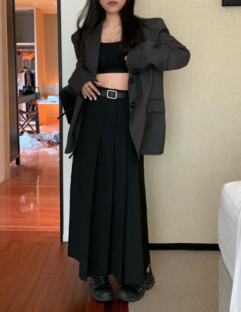 グレースーツスカート不規則なウエスト春ペチコート段段 Faldas モーダミディロング黒プリーツスカートプレッピースタイル Y2k ブラック スプリング 春物