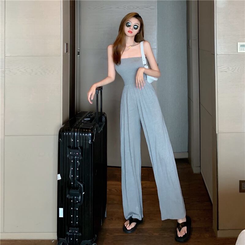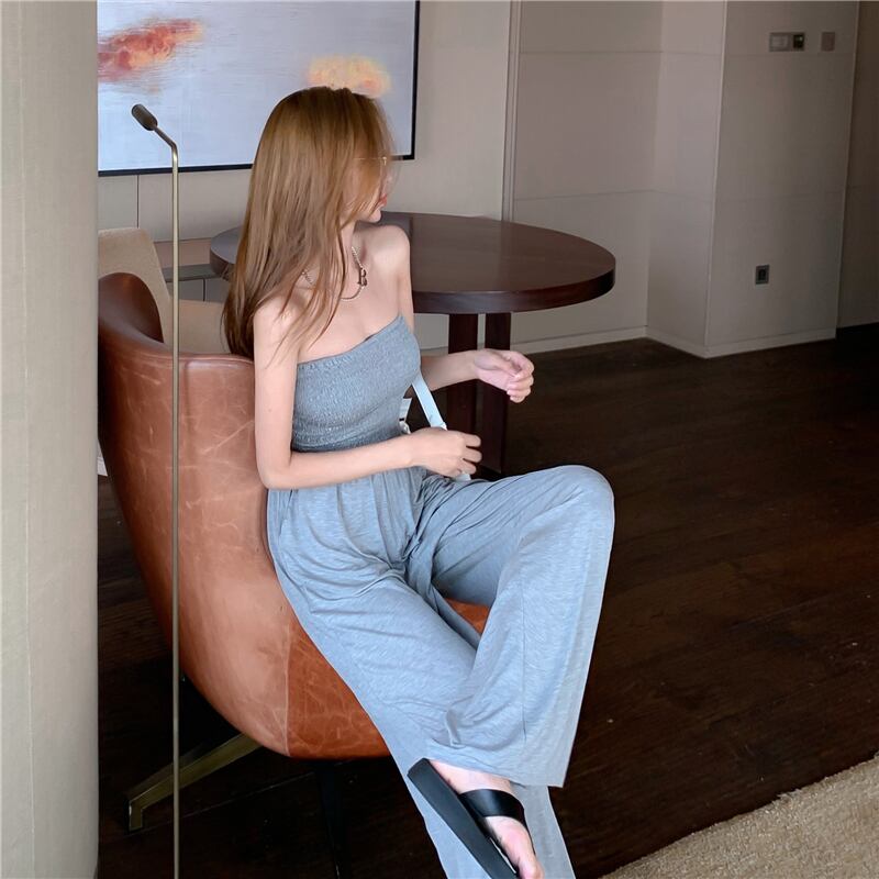 グレー プリーツ ストラップレス ジャンプスーツ春ワイルド ルーズ ワイドレッグ ウエスト オーバーオール ロンパース クラブ衣装 ボディスーツ セクシー スプリング 春物 ワイドパンツ