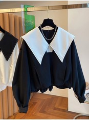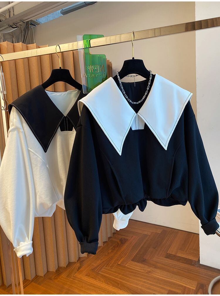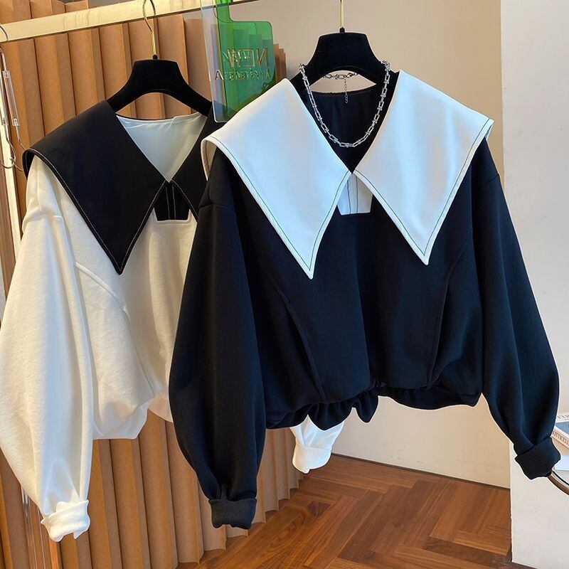 ターンダウン襟パーカー美的ストリート Y2k 服原宿 Sudadera 特大黒パーカーグランジ白トップス ホワイト ブラック かわいい