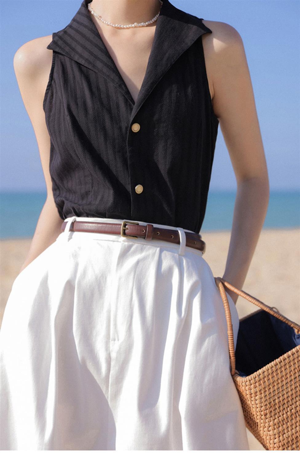 ノースリーブ タンクトップ キャミソール セクシーな blusa ol ブラック シフォン シャツスリム シングル ブレスト ストライプ ブラウス シャツ スーツ