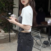 セクシーな不規則な半袖 Tシャツパッチワークスリムフィットトップ Y2k Tシャツグランジグラフィック Tシャツ絞り染め Tシャツ穴 ショート ハーフスリーブ