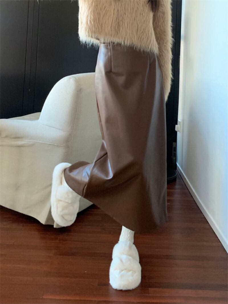 春ウエスト分割 PU 黒革スカート A ラインラップヒップペチコートストリート段 Faldas Largas Y2k ミディゴス ブラック スプリング 春物 レザー Aライン