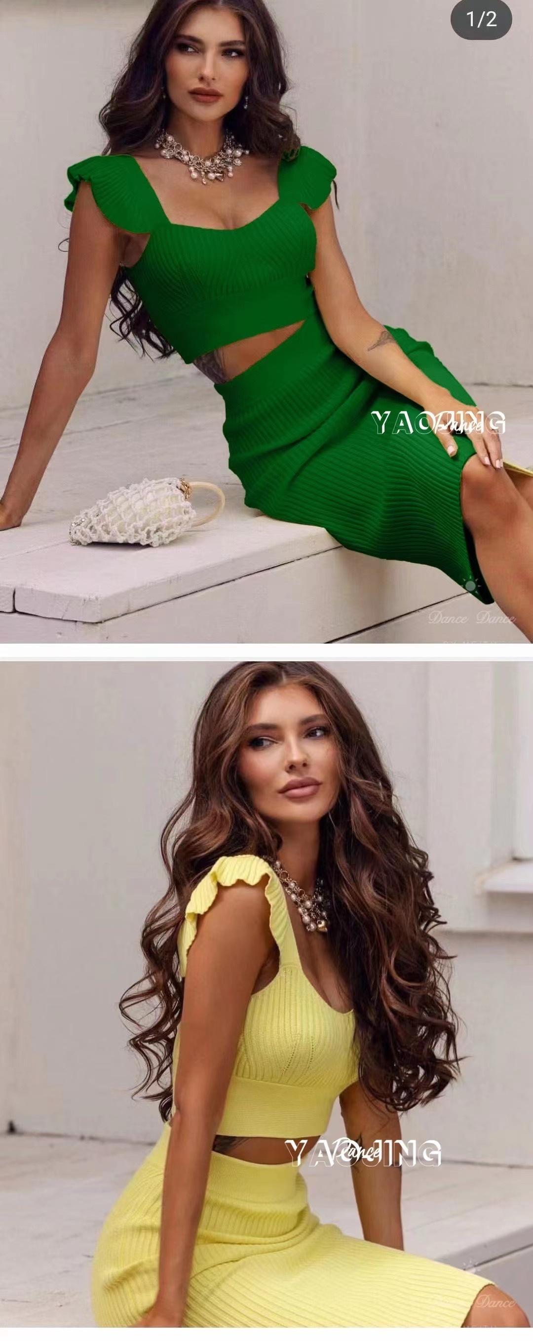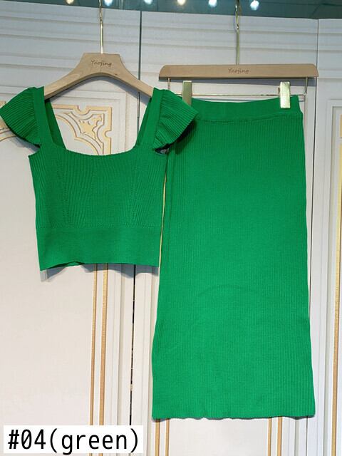 夏セクシーなキャミソールタンククロップトップスボディコンスリムニットシャツ野生ホワイトニットスカートセット サマー 夏物 ソリッドカラー