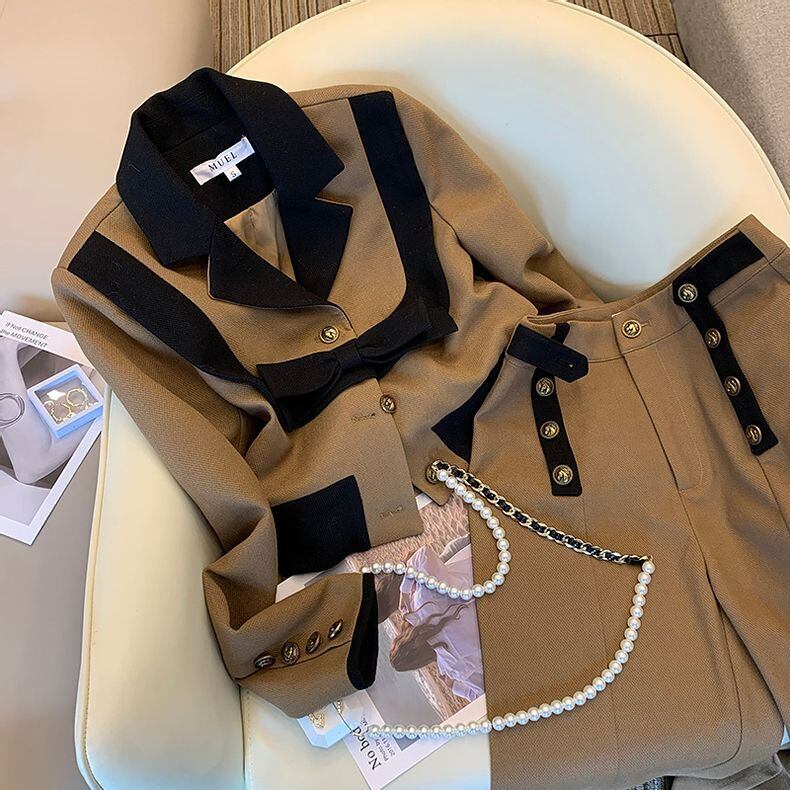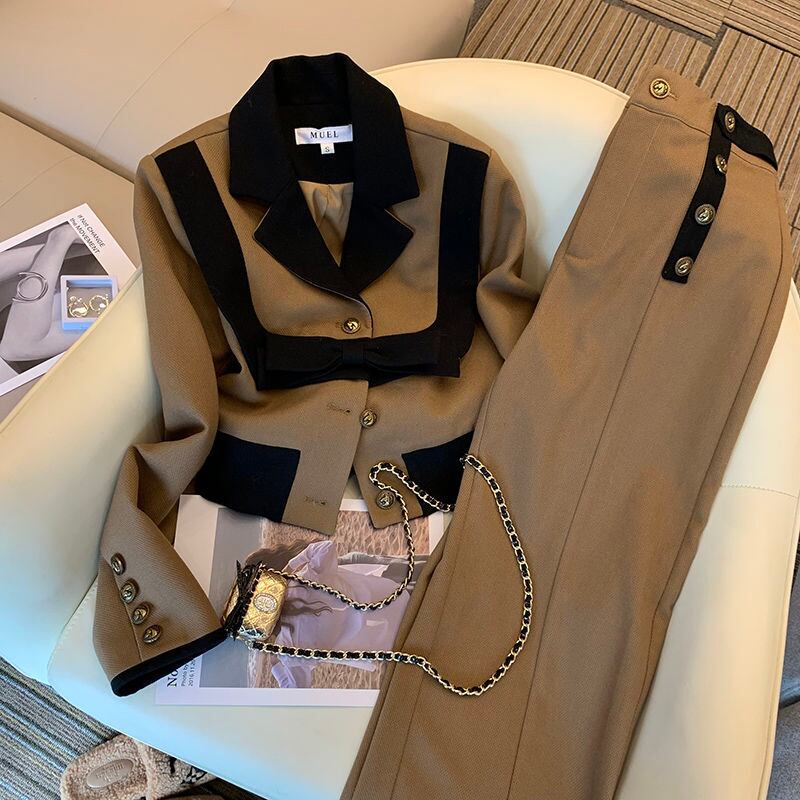 ノッチブレザー 長袖 ジャケット ルーズ アンクル丈 ワイドレッグ パンツスーツ テーラードパンツ セット 秋 ロング レッド ワイドパンツ