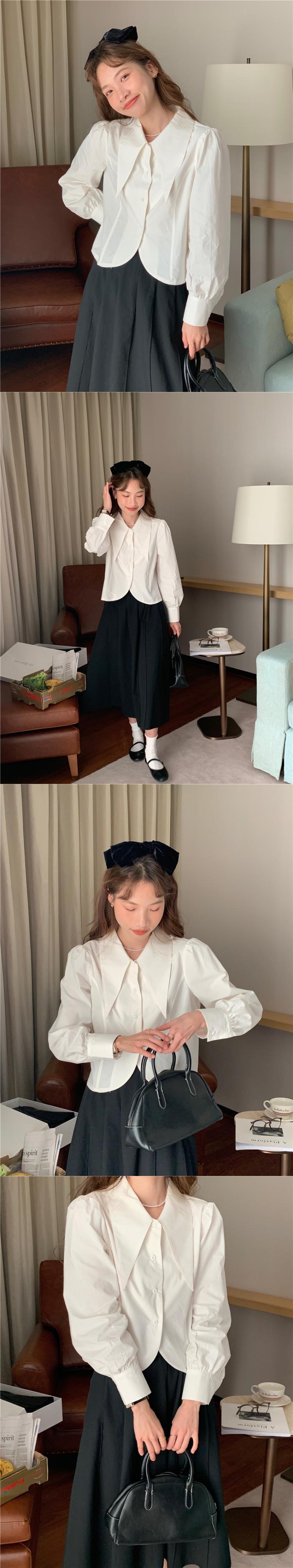 カミサ ホワイト シャツ レディース ワイルド スプリング トップス ソリッド ブラウス シック カラー ボタン シャツ 春物 ソリッドカラー