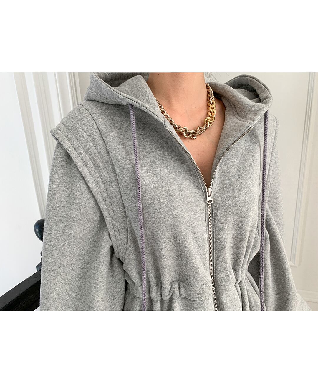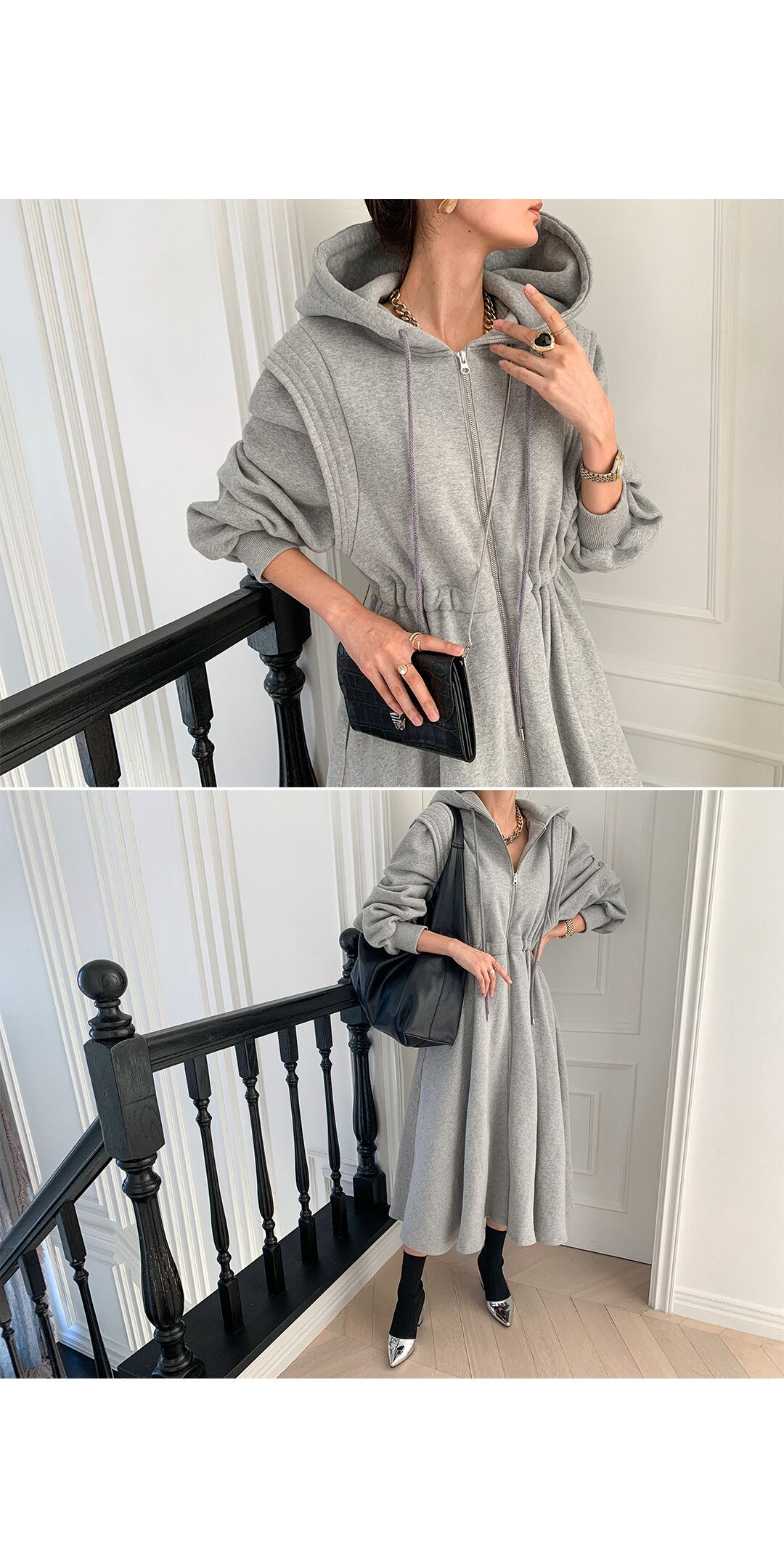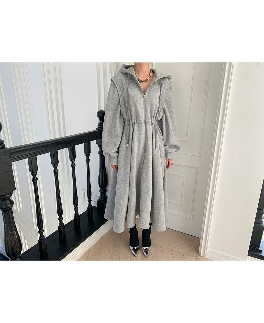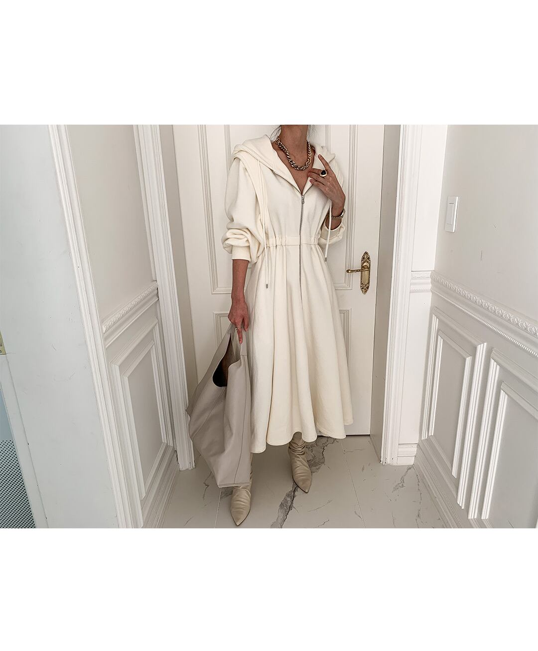 ルーズウエストビッグスイングフード付きジッパーパーカー黒ドレスオールマッチローブ秋冬マキシ Vestidos ブラック オータム 秋物 ウィンター 冬物