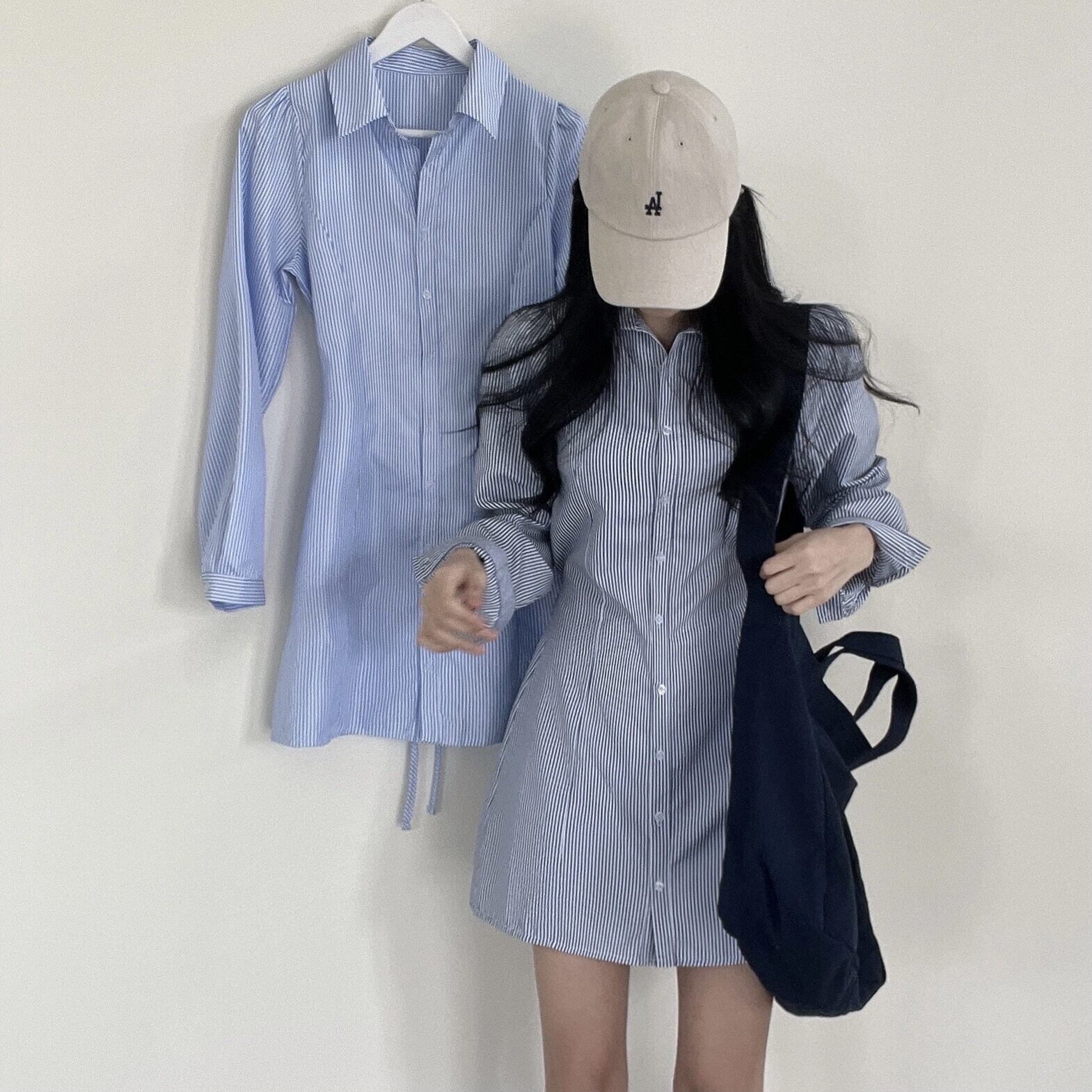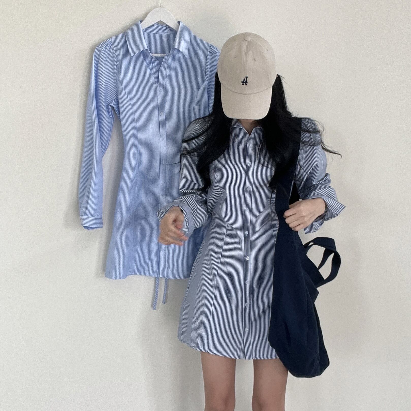 スリムフレッシュラペルブルーストライプシャツドレスボディコン A ラインセクシーな Vestido ショートドレスワイルドスプリング 春物 Aライン