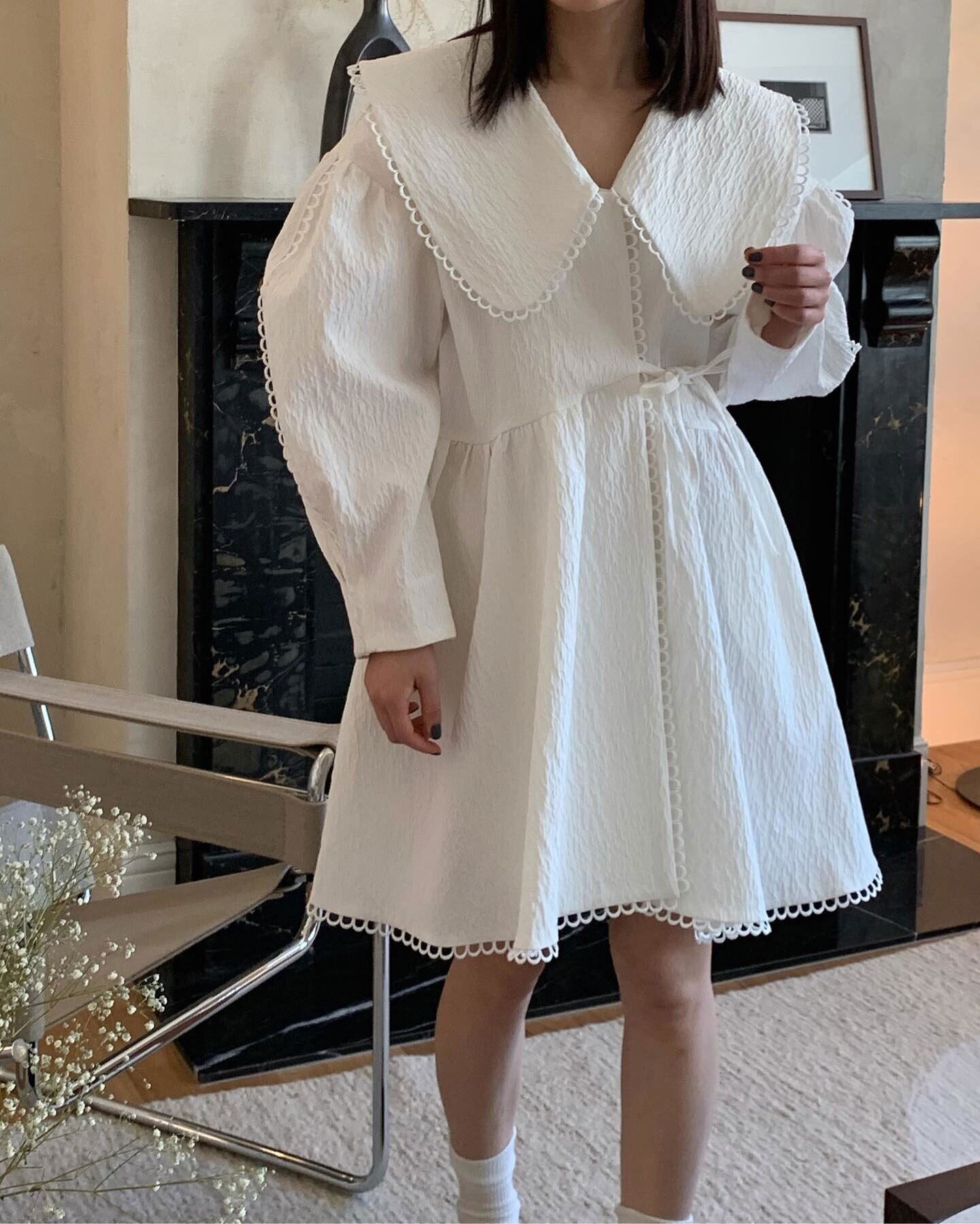 パッチワークレースアップウエスト A ライン大スイングルーズホワイトドールドレスウエストローブセクシーな Vestidos ジャカード Aライン